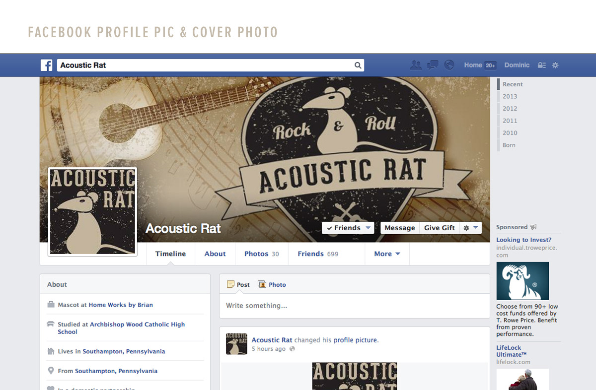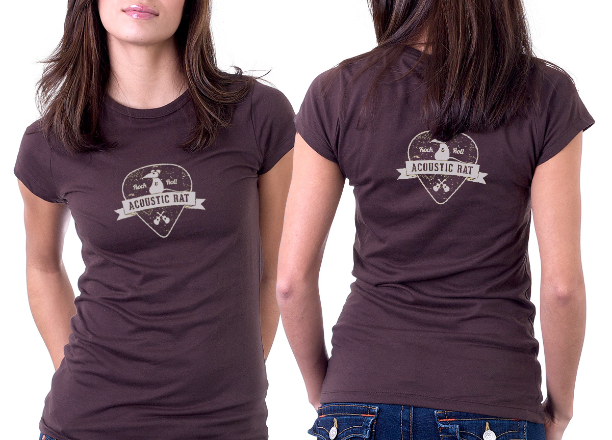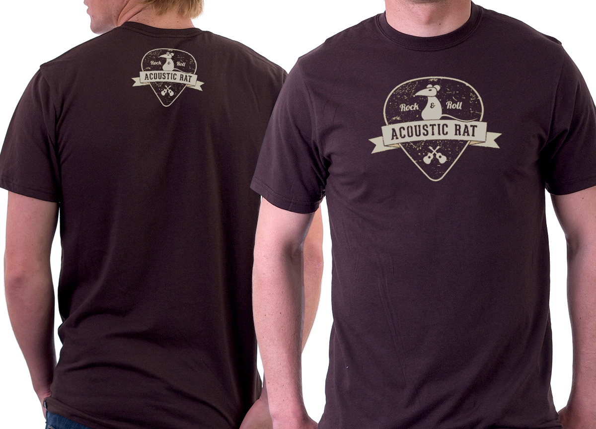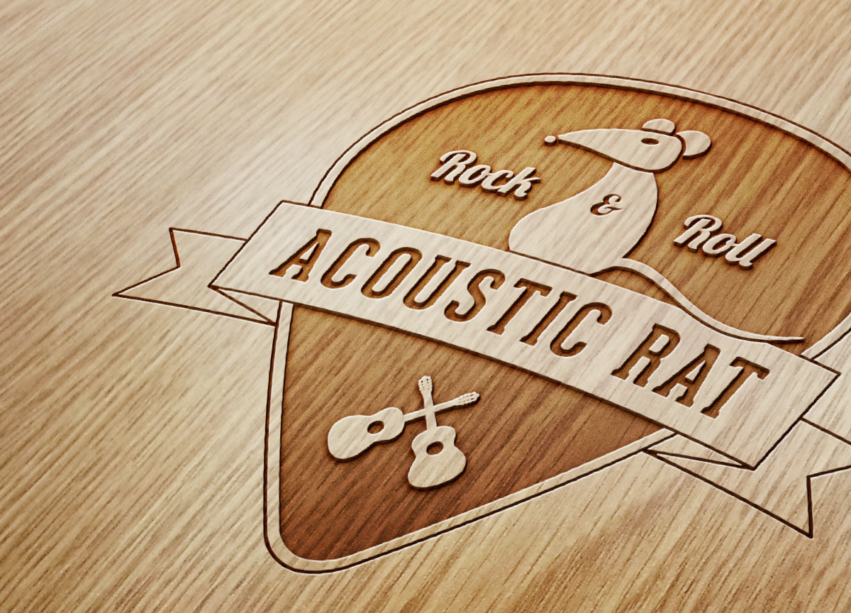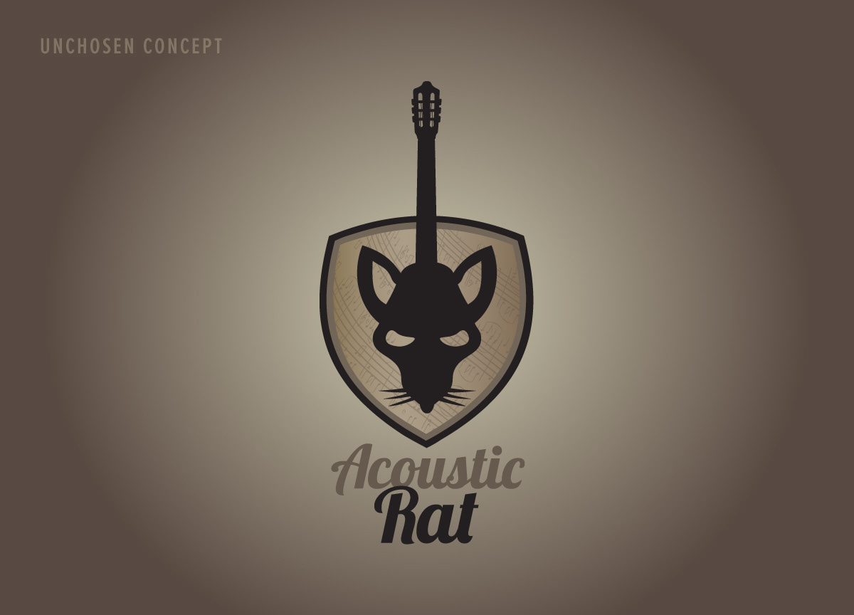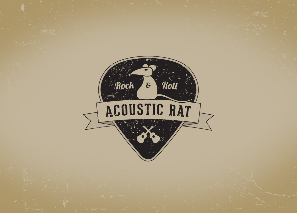 This logo was created for a live performer affectionately known as the Acoustic Rat, and one of his favorite sayings is "Rock & Roll". A guitar pick made for the perfect emblem backdrop.